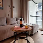 Apartament Szczecin Nad Odra ligger cirka 16 minuter till fots från Szczecins filharmoniker och har utsikt över staden.